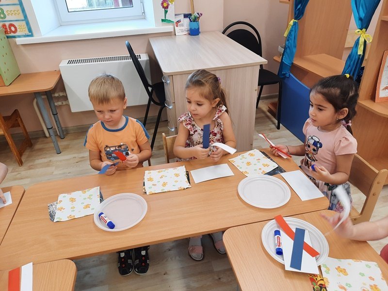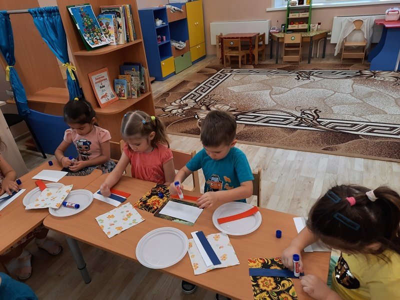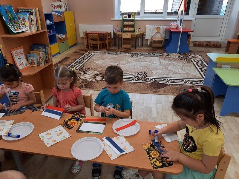 10 декабря воспитанники средней группы №6 "Улыбка" (воспитатель Е. А. Коротенко) познакомились с главным законом страны – Конституцией. Дети узнали, как выглядит герб Российской Федерации и где его можно увидеть в обычной жизни, с чем ассоциируются цвета российского триколора, что такое Гимн, когда он звучит и как правильно надо его слушать. Особый интерес у детей вызвала карта Российской Федерации. Для празднования Дня Конституции ребята изготовили флаги Российской Федерации.